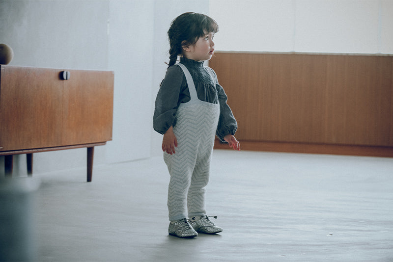 這款日本製針織褲運用 WHOLEGARMENT 無縫技術,完美貼合寶寶身形,打造極致舒適穿著體驗。專為充滿探索精神的小勇士設計,搭配可調式肩帶,靈活適應 70~80cm 身高,從午睡到爬行都自在自如。鋸齒形圖案靈感源自傳統山路,象牙白與粉紅色調巧妙融合,展現獨特個性與優雅。寒冬出遊可搭針織外套或無簷帽,輕鬆打造時尚又實用的探險裝備。讓寶寶穿出態度,勇敢迎接每一步新挑戰。