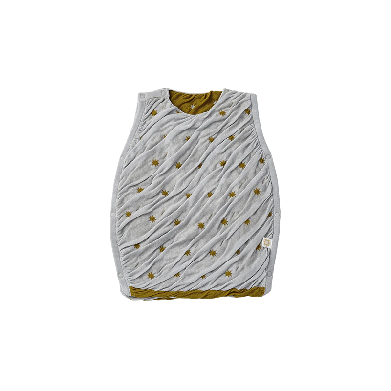 柔和藍色布料配以青銅色星星,靈感源自黎明星空,為寶寶帶來安全感與溫馨睡眠體驗。