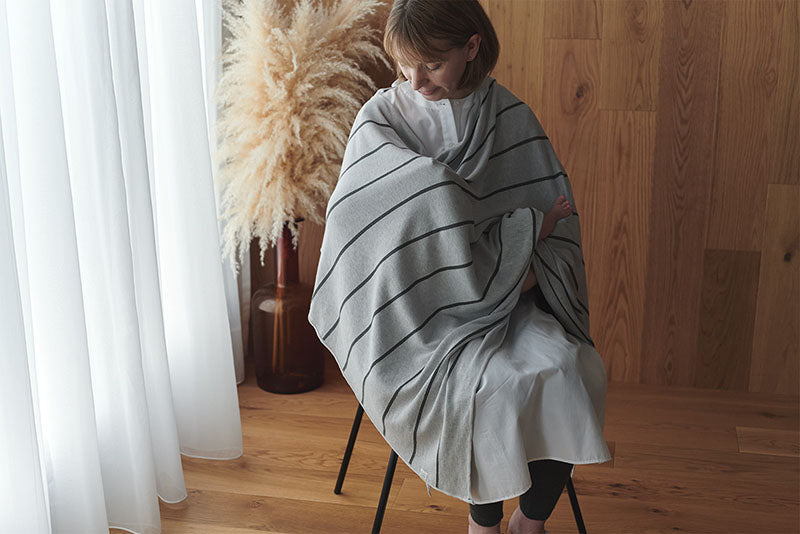 「日本製」okurumi 3 sumi針織襁褓毯子哺乳巾斗篷