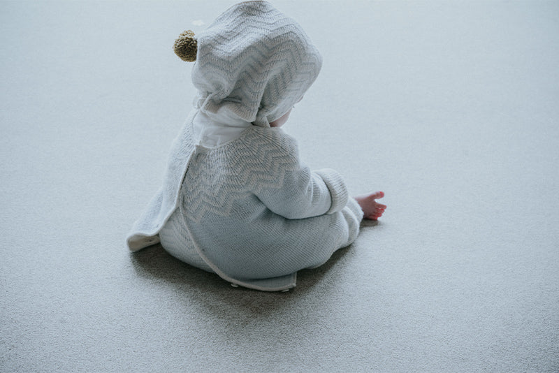 象牙色與淺藍色雙重圖案,低調又富層次,搭配同系列針織帽褲,打造獨一無二的冬季潮流。