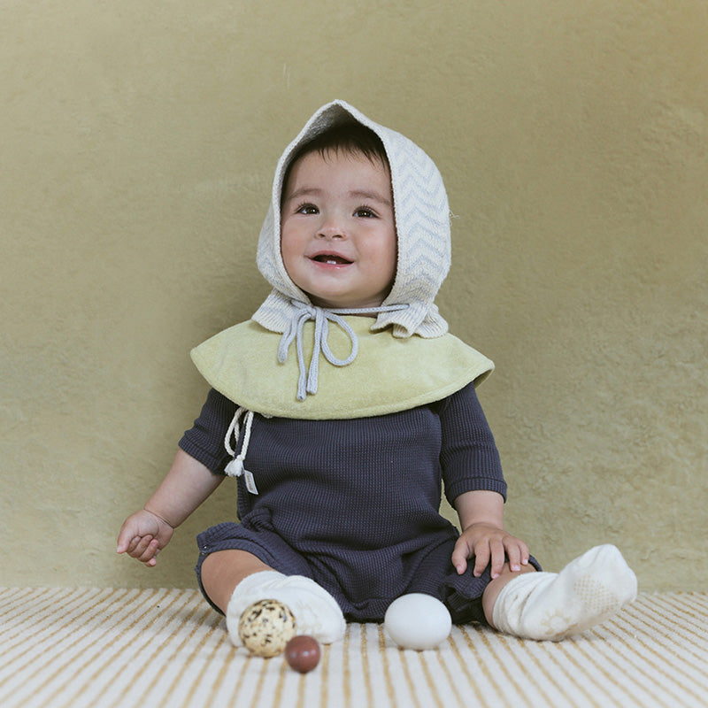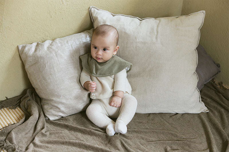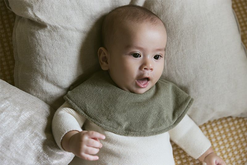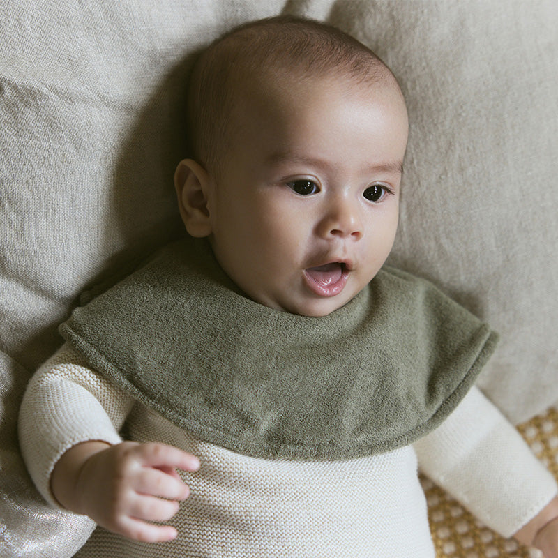 Wrap your little one in calm sophistication with this Japan-made bib, crafted to grow alongside baby. Featuring PlaX™, an eco-friendly material that gets stronger with each wash thanks to natural antibacterial power. The waterproof inner layer shields clothes from spills and drool, keeping both baby and parent fresh. Dressed in a serene moss green inspired by wabi-sabi, its timeless design turns everyday moments into something special. Ideal for newborns, 100-day celebrations, or half-birthday milestones, it’s a bold gift choice—make it truly unique with custom name embroidery.