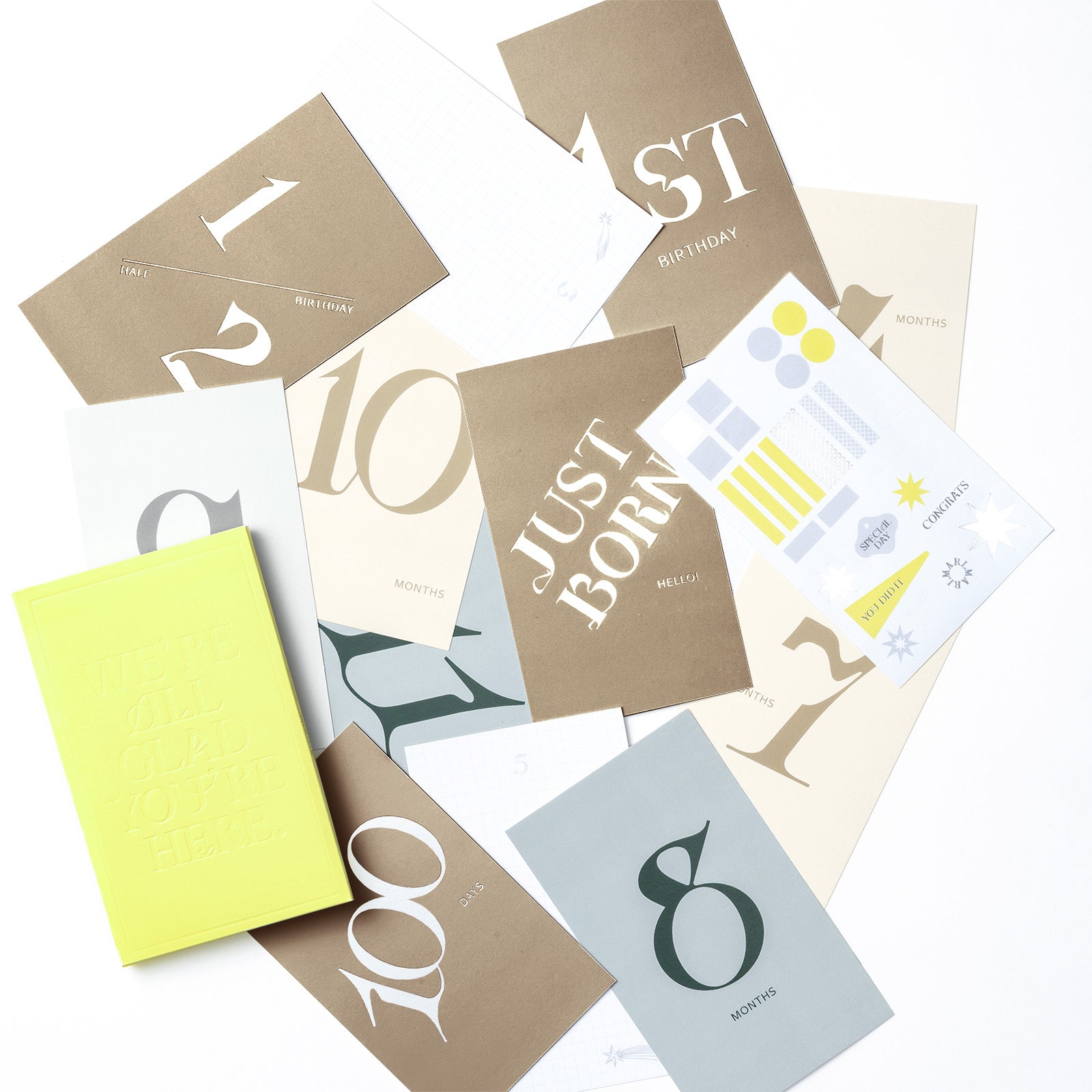 卡片內含里程碑卡、裝飾貼紙和一個方便收納的收納盒。