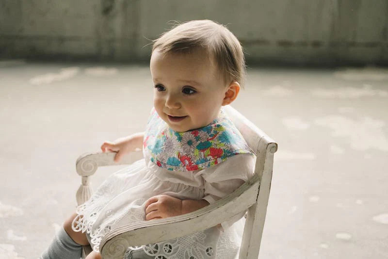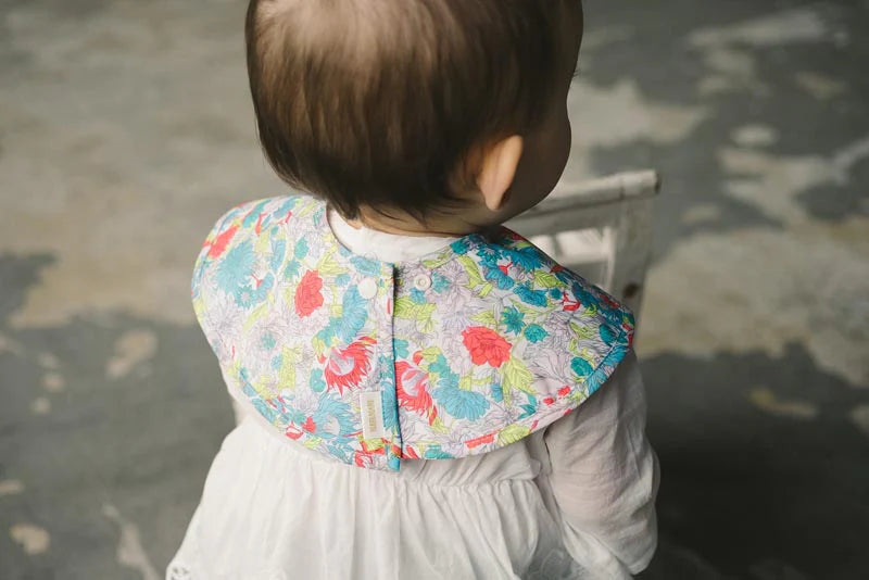This vibrant and stylish Bibs features a beautiful floral design inspired by sun-loving plants. The bib's neon colors add a bright accent, making the baby's face light up with happiness.