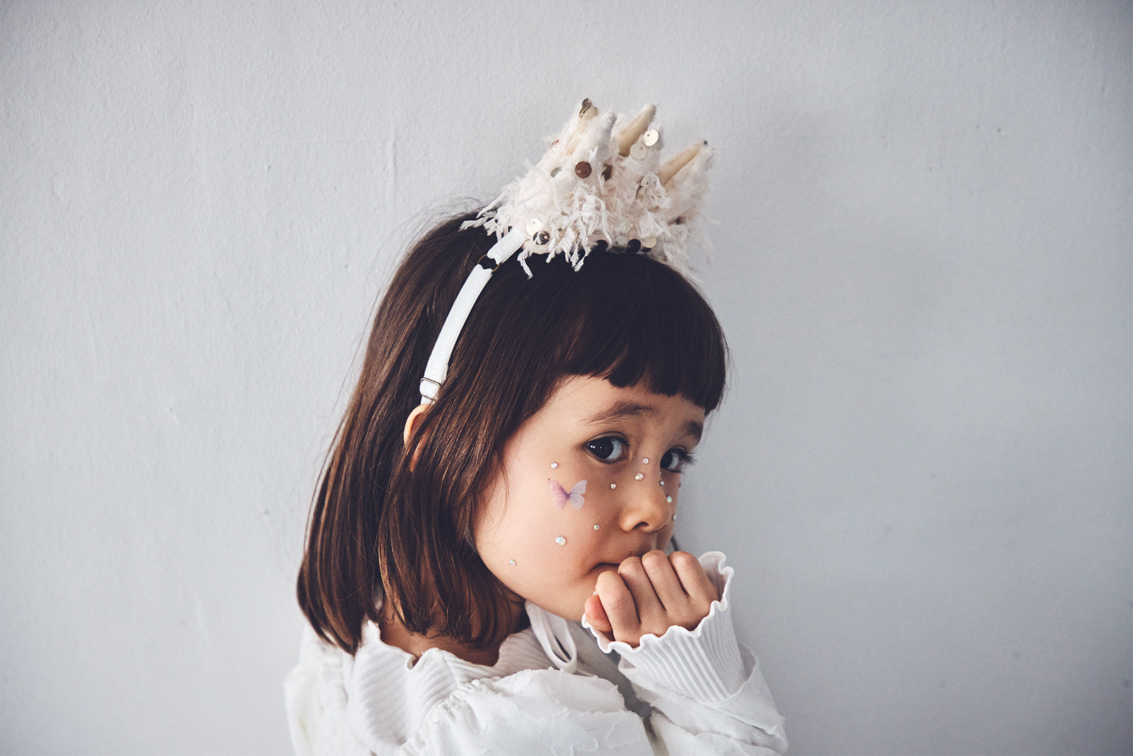 天鵝絨風格的下巴帶柔軟、有彈性且可調節,可讓您一整天感到舒適。內建絲帶有助於調整位置,使其始終看起來恰到好處。此外,皇冠內部的柔軟滾邊可防止亮片造成刮傷。