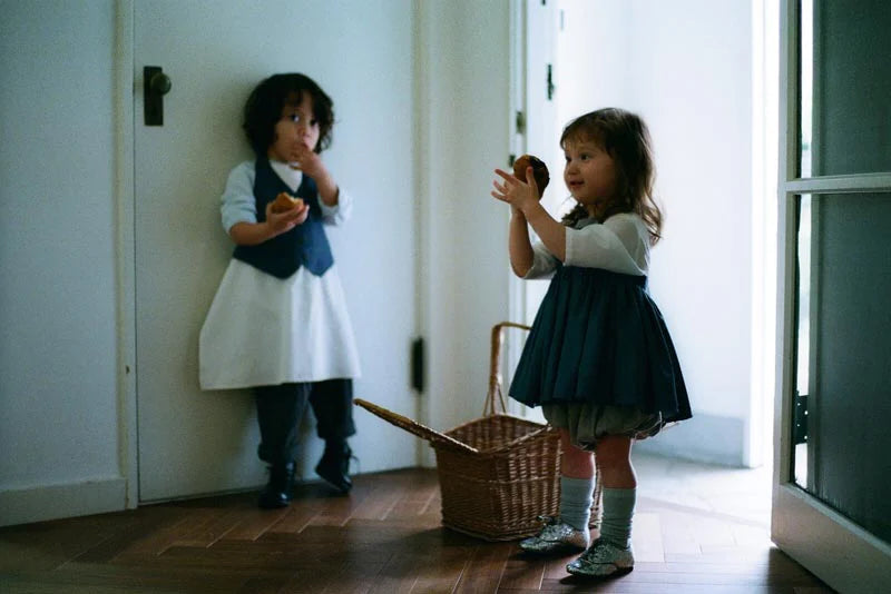 搭配海軍藍圍裙,還可以搭配同色系的男女搭配。