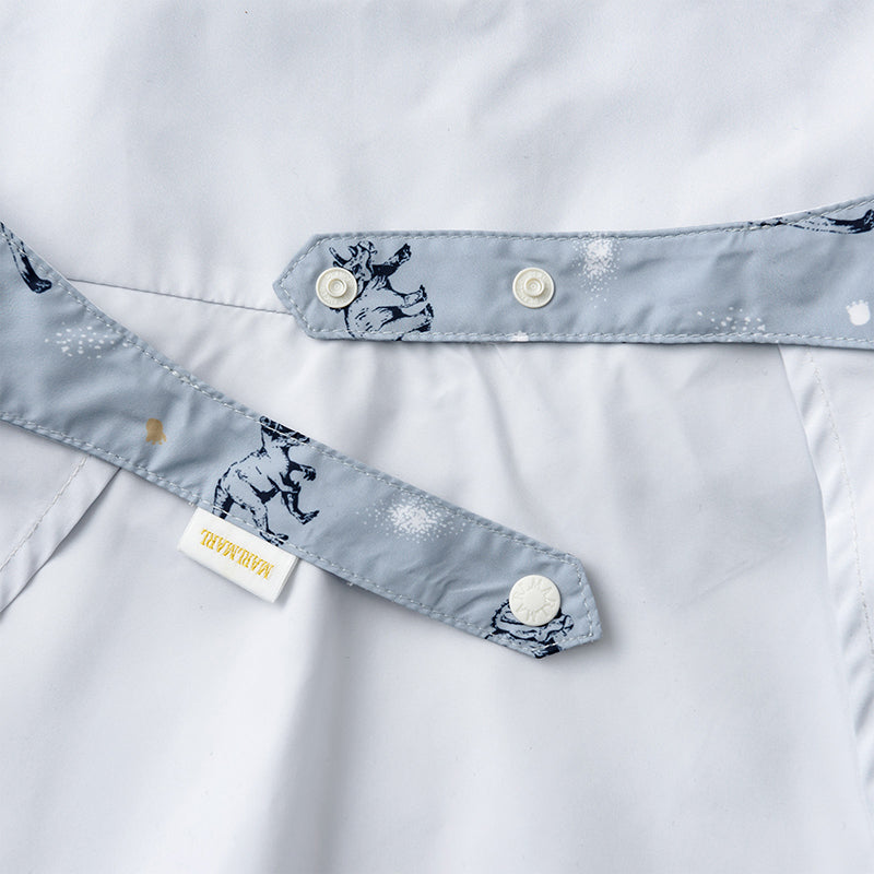 Made with recycled polyester that is environmentally friendly. The soft, water-repellent fabric is resistant to moisture and dirt, and is easy to care for. The snap buttons at the neck and waist allow for two-stage adjustment as the child grows.