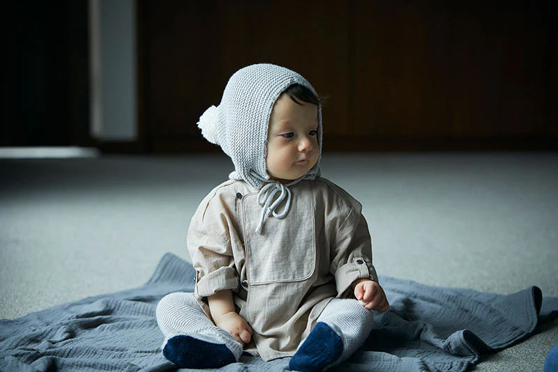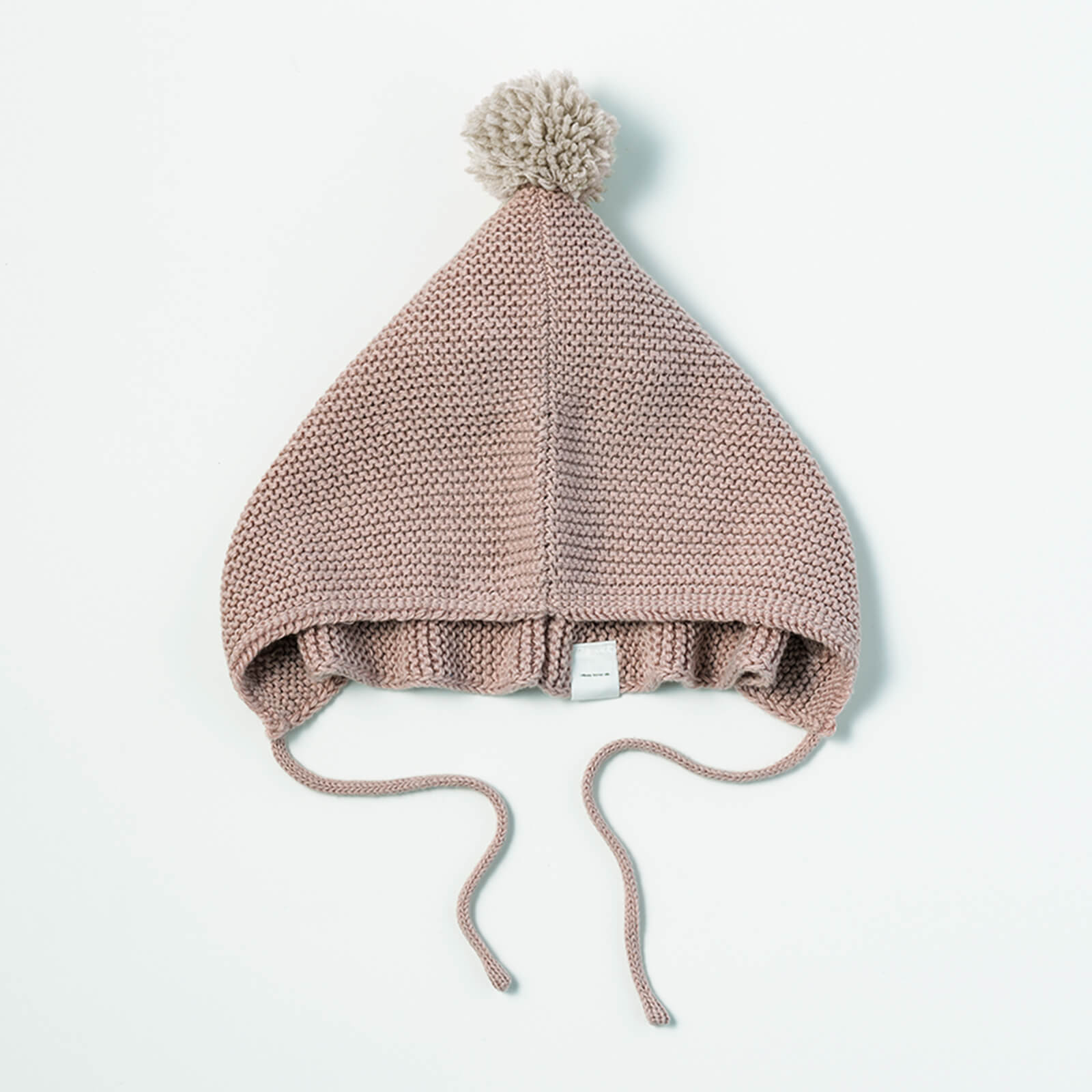 knit hat bonnet 無縫編織帶球球針織帽3m~2y
