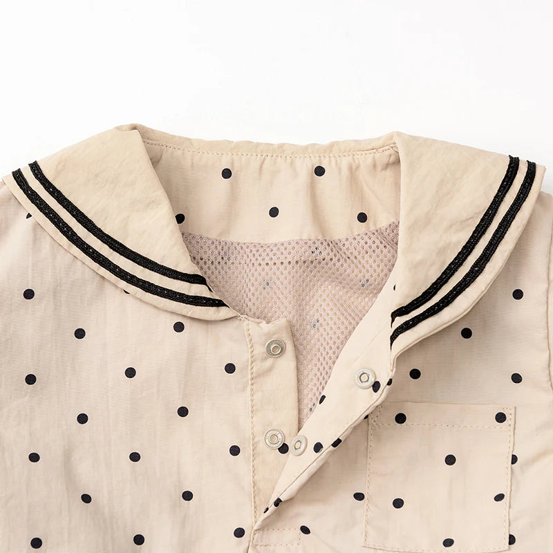 柔和米色底配以趣味黑點和黑色線條衣領,百搭且時尚。