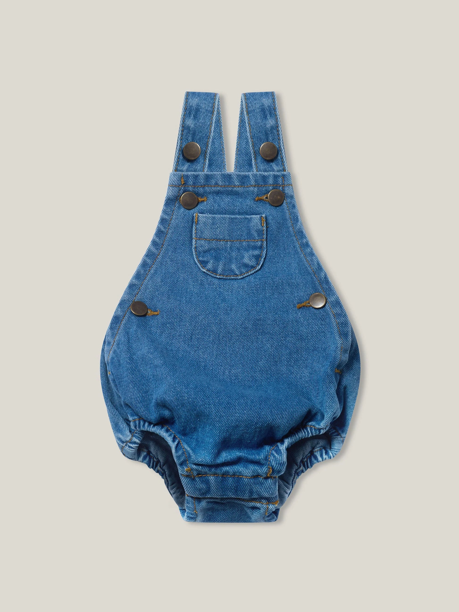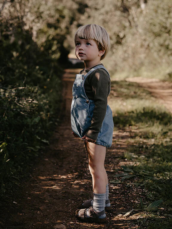 Made for playful days, this sweet romper is in our signature organic denim. It features hidden buttons in the back so the straps can be adjusted for your ideal fit, and hidden crotch snaps for sizes up to 3 years. Wear it on its own or pair it with our Chunky Sweater!