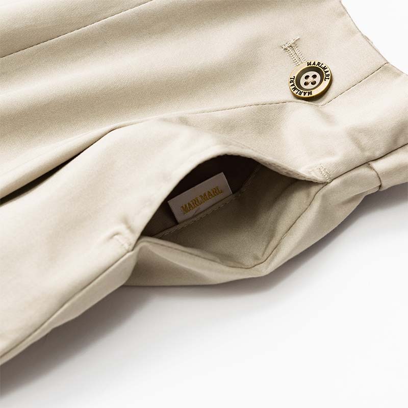 以時髦米色棉緞面料打造,展現獨特光澤感。