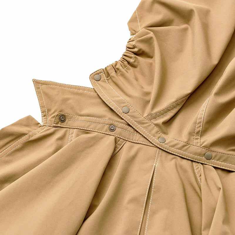 精心設計的傘架與網眼布料,炎熱時保持透氣,寒冷時鎖住溫暖,下擺彈性鬆緊帶為風吹雨打添強力防護。