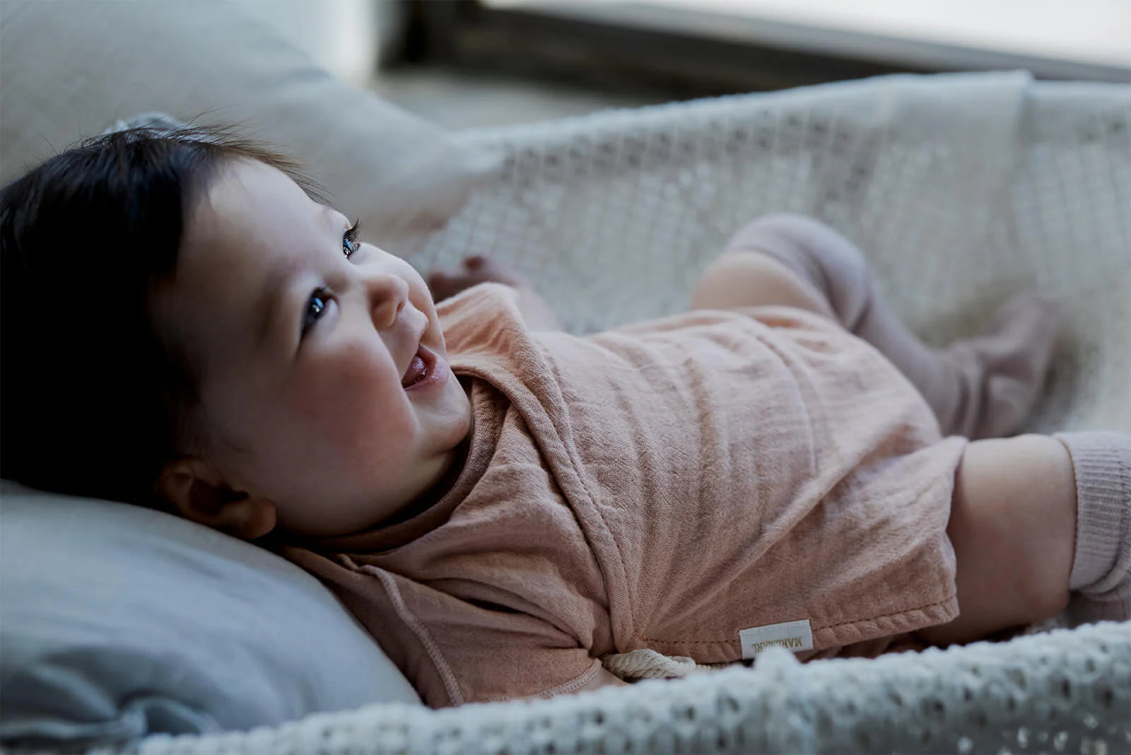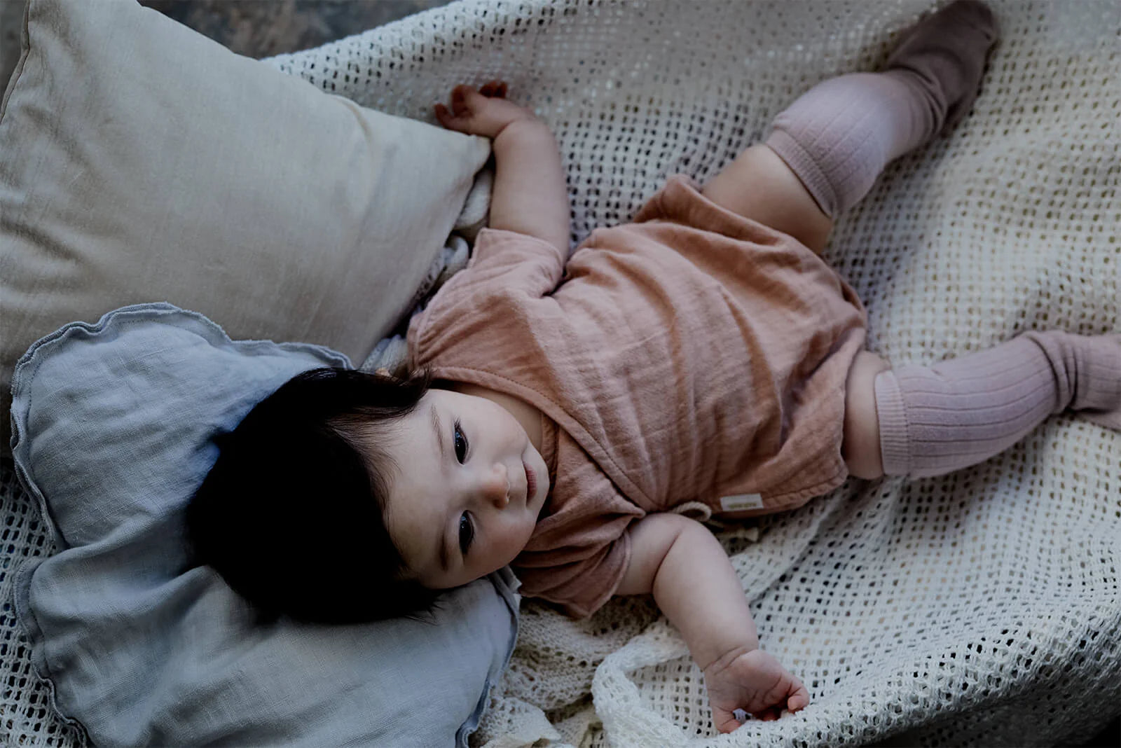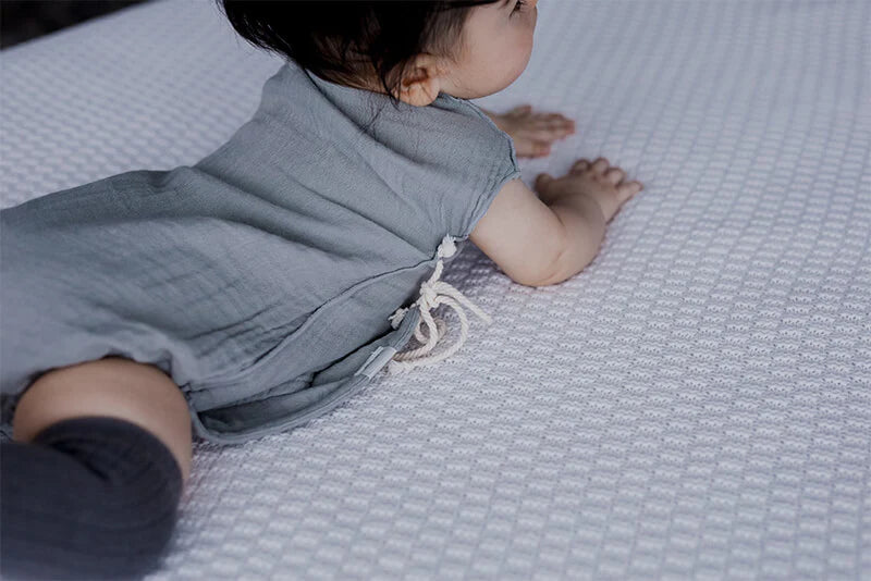 棉質雙層紗布材質讓流汗的嬰兒肌膚保持乾爽舒適。
