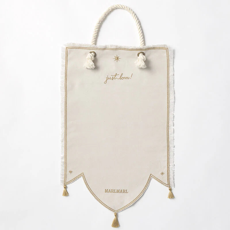 一組三件的短袖內衣,採用對新生兒溫和的材料製成,還有一張掛毯可以記錄孩子的回憶。